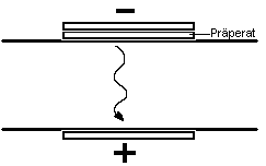 Auf diesem Weg lassen sich verschiedene Medikamente in den Körper bringen, die sich nach Passage der Haut über das Blutgefäßsystem gleichmäßig im Körper verteilen. Größer ist jedoch die Bedeutung bei der lokalen Behandlung von Erkrankungen und Verletzungen der Haut, Muskeln und Sehnen. Die Wirkstoffe von beispielsweise Rheumasalben wandern im elektrischen Feld besser durch die Haut zu den Muskeln, Sehnen und Gelenke. Das bekannte Diclofenac (z.B. VoltarenÒ ) gehört als Salbe unter die (-)Elektrode. Abbildung 5 illustriert diese spezielle Anwendung der Elektrotherapie.